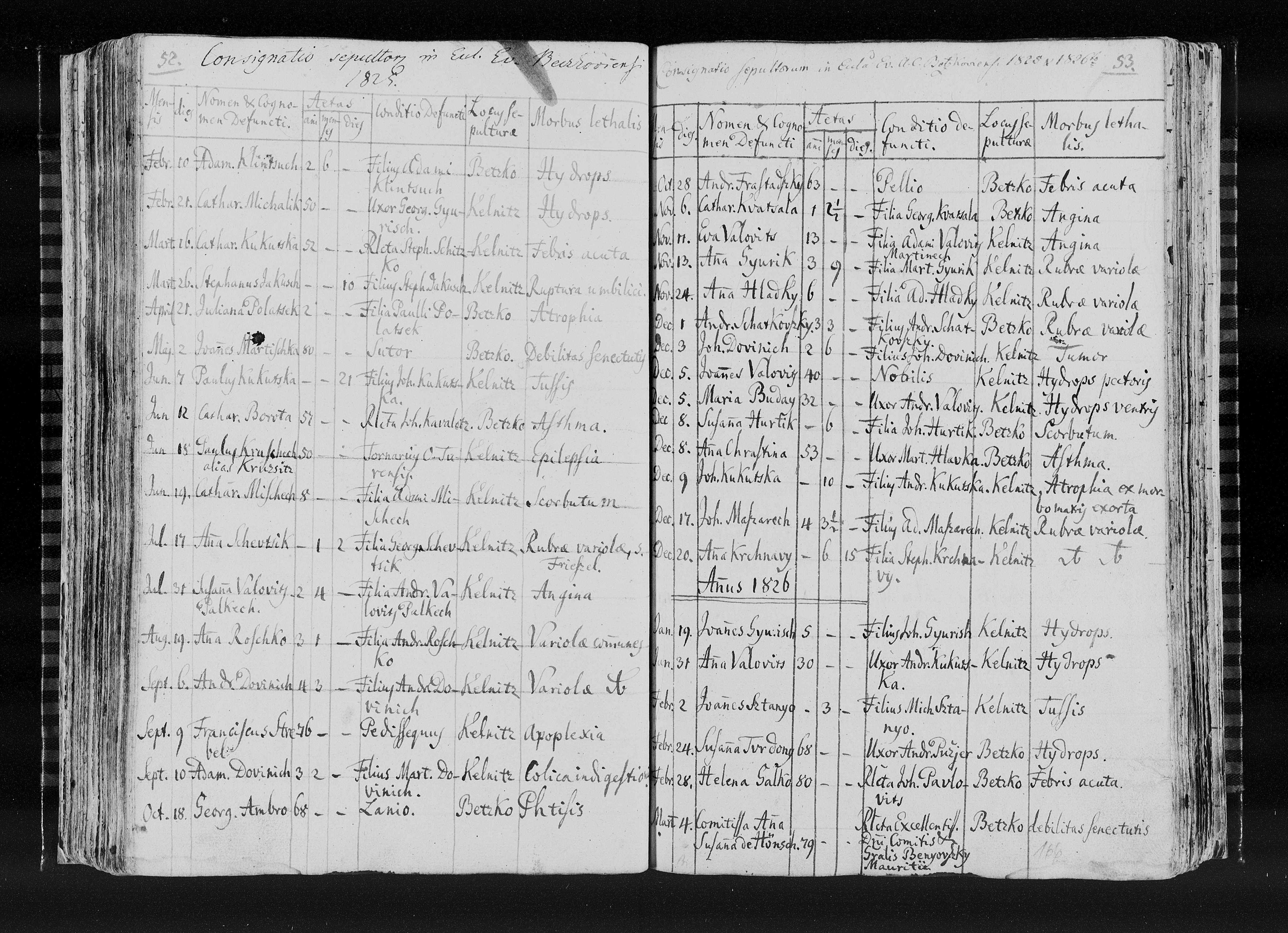 Anna Hönsch's death record of 1826 - the very last entry at the foot of the right-hand page... "Debilitas senectutis" - died of old age.